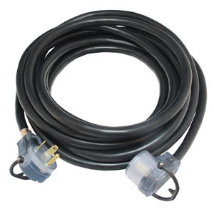 Camco 30' RV Extension Cord with Handle is a 50 AMP cord with handles. It features the patented power grip handles for ease of use....