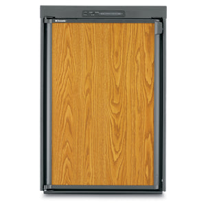8-Series refrigerator from Dometic. Features single door, right hinge, 2 fan, black frame and metal painted silver door panel. Recess dimensions measure to 34 in....