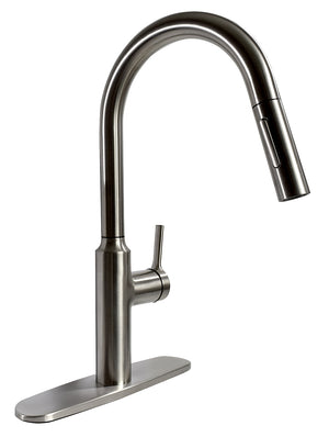 Streamline Squared-Arc RV Kitchen Faucet in Satin Nickel features a Smooth-turning single-lever for quick and precise control of temperature and stream strength. Provides full sink...